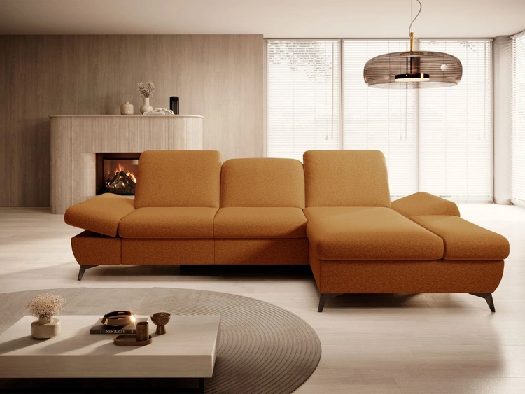 Ecksofa L-Form Rechts mit Schlaffunktion und Bettkasten Limon Orange