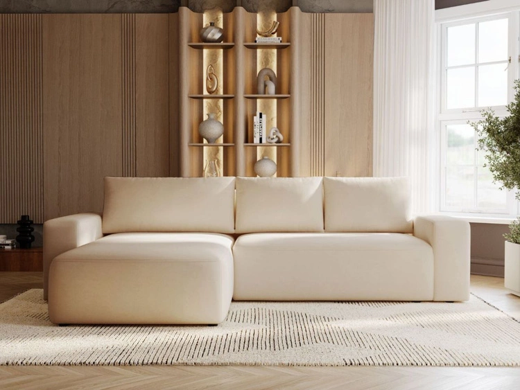 Ecksofa L-Form Rechts mit Schlaffunktion und Bettkasten Limon Beige
