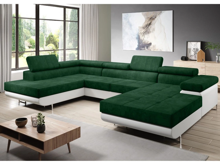 Anzahl der Produkte: 338Wohnlandschaft Links mit Schlaffunktion und Bettkasten Solam U Grün, Weiß