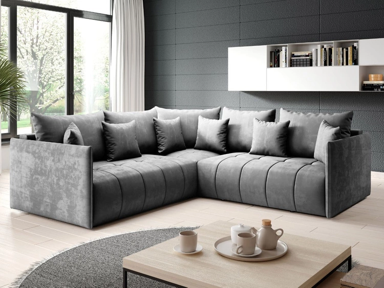Wohnlandschaft Links mit Schlaffunktion und Bettkasten Solam U Grau