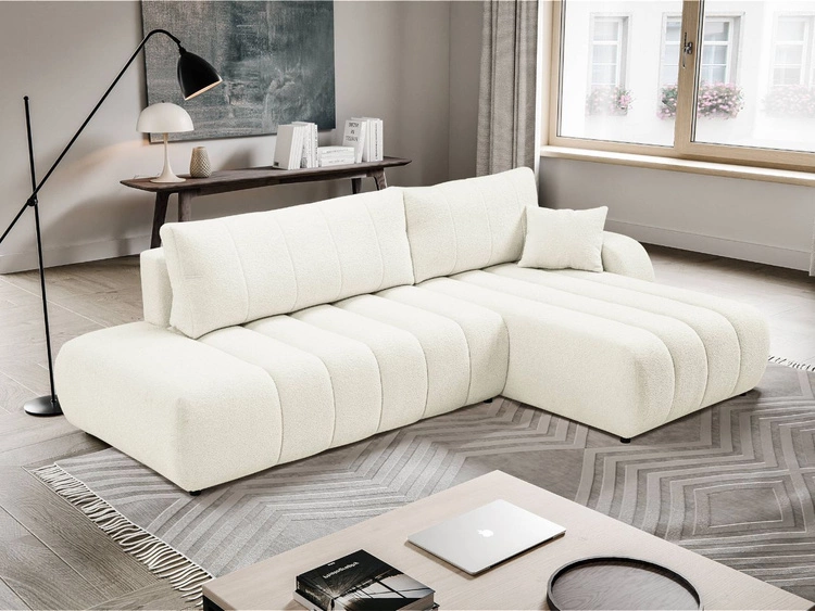 Ecksofa L-Form Rechts mit Schlaffunktion und Bettkasten Ronni Weiß