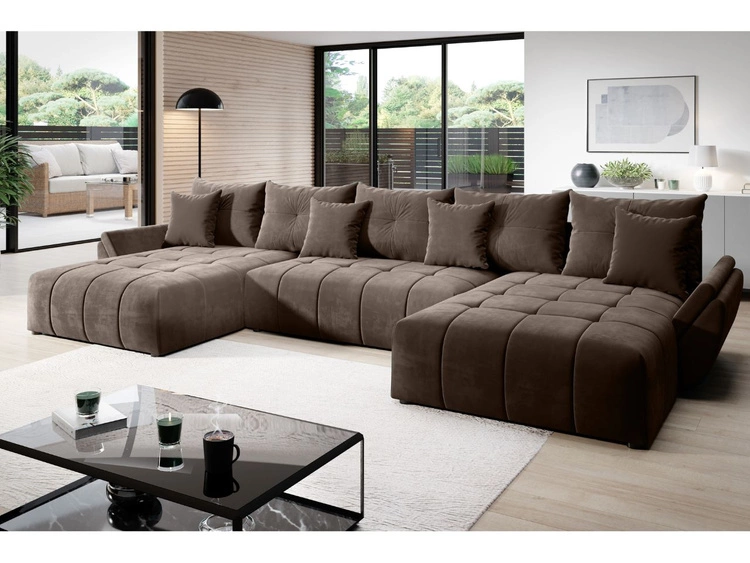Wohnlandschaft mit Schlaffunktion und Bettkasten Decor U Braun