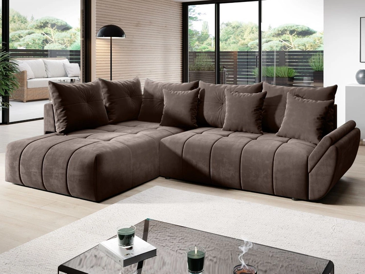 Wohnlandschaft Links mit Schlaffunktion und Bettkasten Solam U Braun