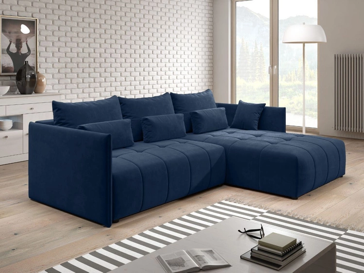 Ecksofa L-Form Rechts mit Schlaffunktion und Bettkasten Limon Dunkelblau