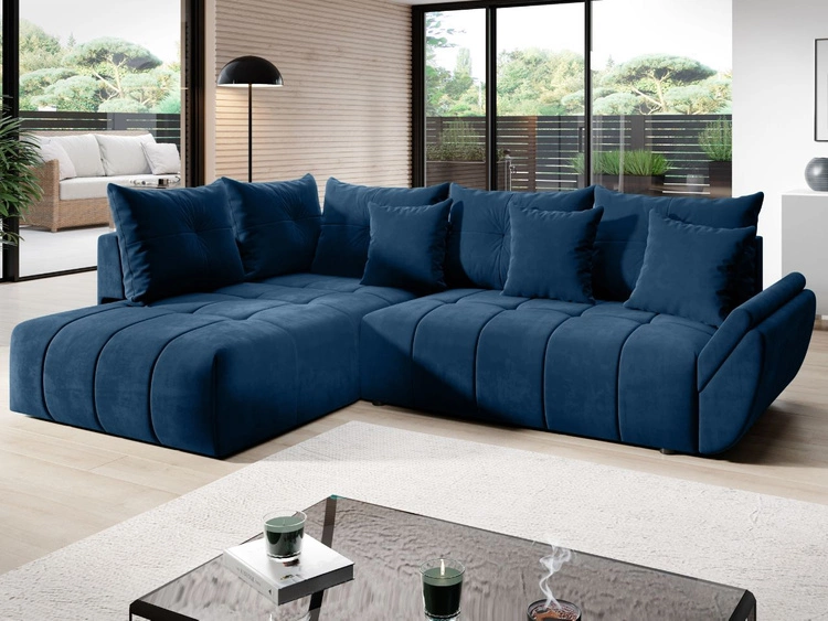 Dunkelblaue Ecksofas sind nicht nur äußerst stilvoll, sondern bieten auch einen hohen Komfort. Die beruhigende und doch kräftige Farbe Dunkelblau schafft eine harmonische Atmosphäre in Ihrem Wohnzimmer und sorgt dafür, dass Ihr Sofa zum Mittelpunkt des Raumes wird. Unsere Ecksofas zeichnen sich durch hochwertige Materialien und präzise Verarbeitung aus, was für eine lange Lebensdauer und hohen Sitzkomfort sorgt. Ob Sie ein modernes oder klassisches Design bevorzugen, unsere dunkelblauen Ecksofas passen sich jedem Einrichtungsstil an. Dank der modularen Bauweise lassen sich unsere Sofas individuell an Ihre räumlichen Gegebenheiten anpassen und bieten Flexibilität in der Raumgestaltung.