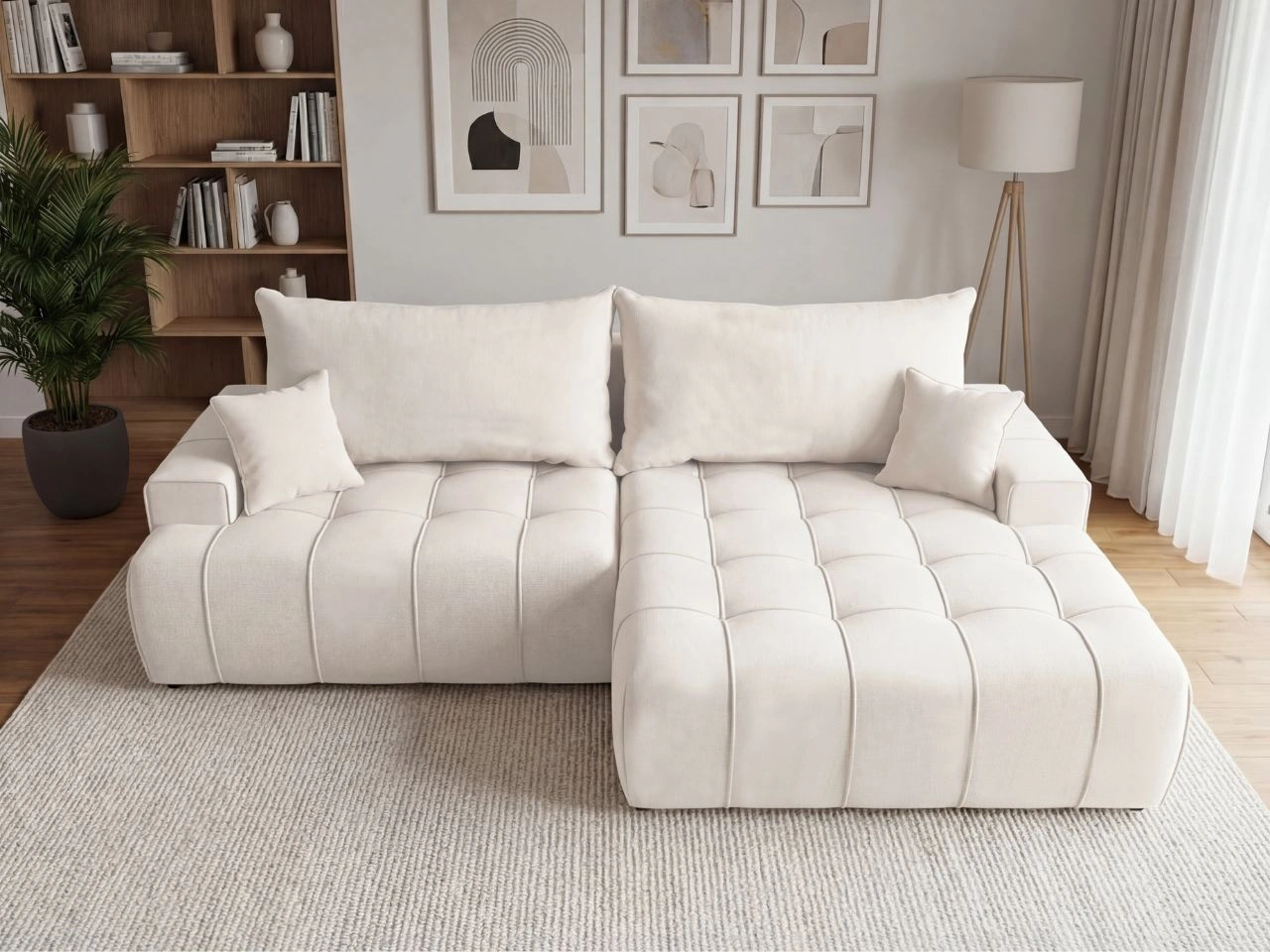 Anzahl der Produkte: 633Ecksofa L-Form mit Schlaffunktion und Bettkasten Tulio Rechts Creme