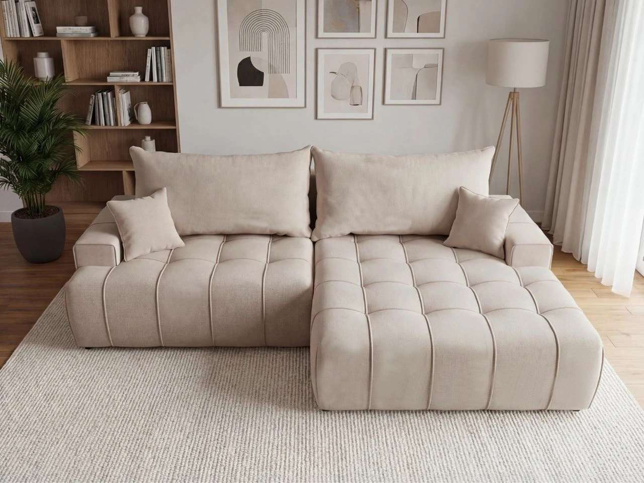 Ecksofa L-Form mit Schlaffunktion und Bettkasten Ardi Creme