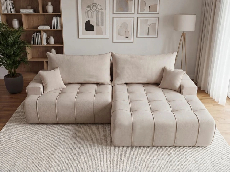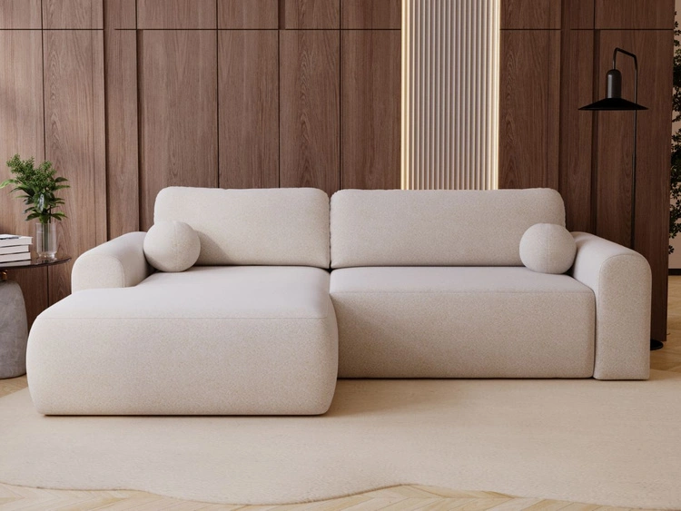 Anzahl der Produkte: 462Ecksofa L-Form mit Schlaffunktion und Bettkasten Savana Links Bouclé-Stoff Creme