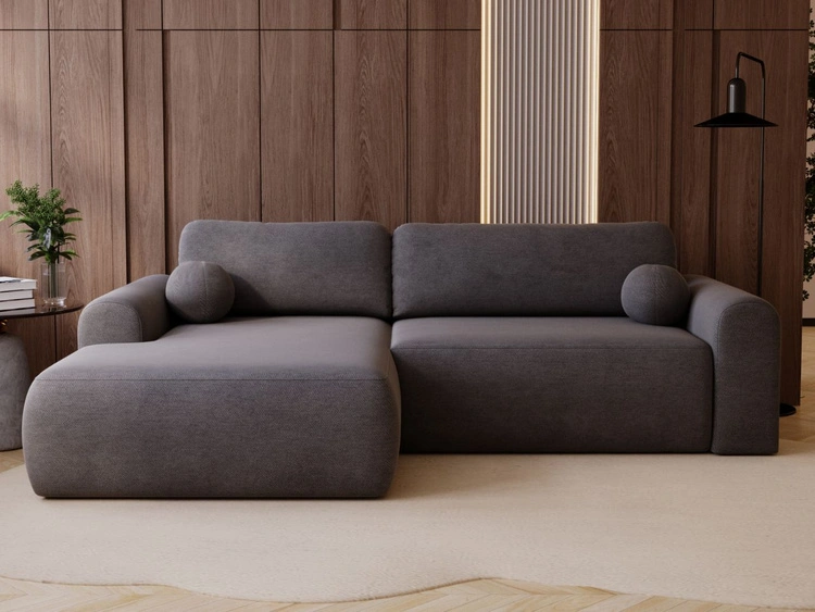 Ecksofa L-Form Links mit Schlaffunktion und Bettkasten Solam L Dunkelgrau