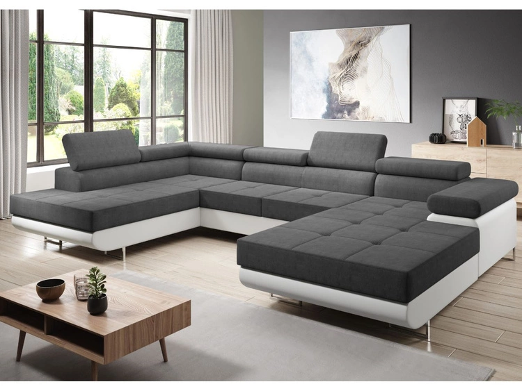 Wohnlandschaft Links mit Schlaffunktion und Bettkasten Solam U Schwarz, Weiß