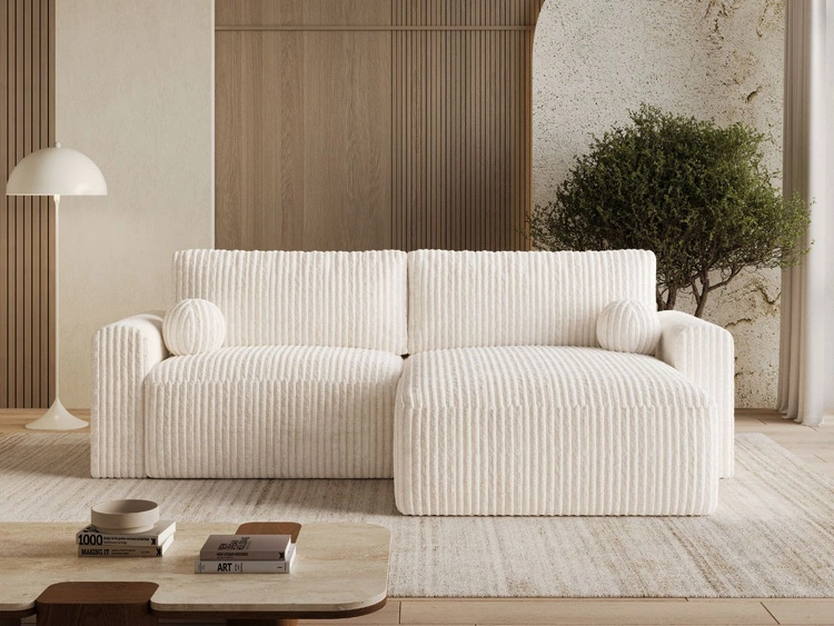 Ecksofa L-Form mit Schlaffunktion und Bettkasten Aurora Creme