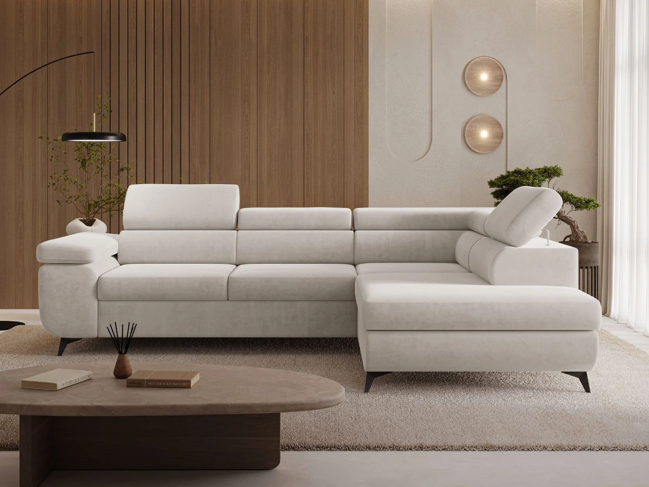 Ecksofa L-Form mit Schlaffunktion und Bettkasten Argon Rechts Beige