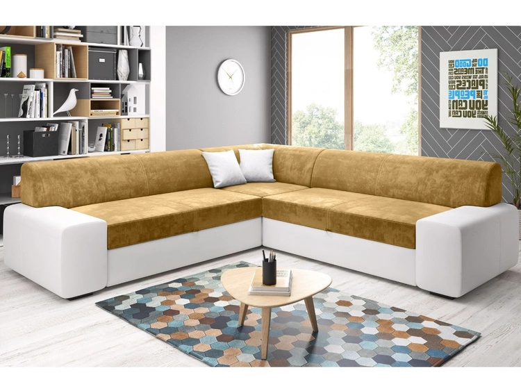 Ecksofa L-Form Links mit Schlaffunktion und Bettkasten Fresto Max Gelb, Weiß