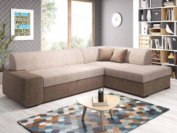 Ecksofa L-Form Rechts mit Schlaffunktion und Bettkasten Fresto Braun