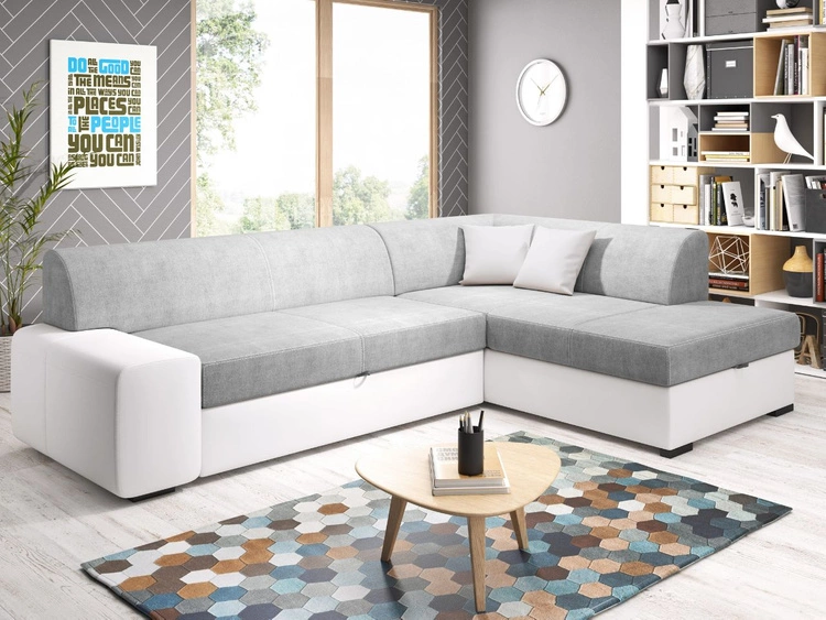 Ecksofa L-Form mit Schlaffunktion und Bettkasten Sonia Grau, Weiß