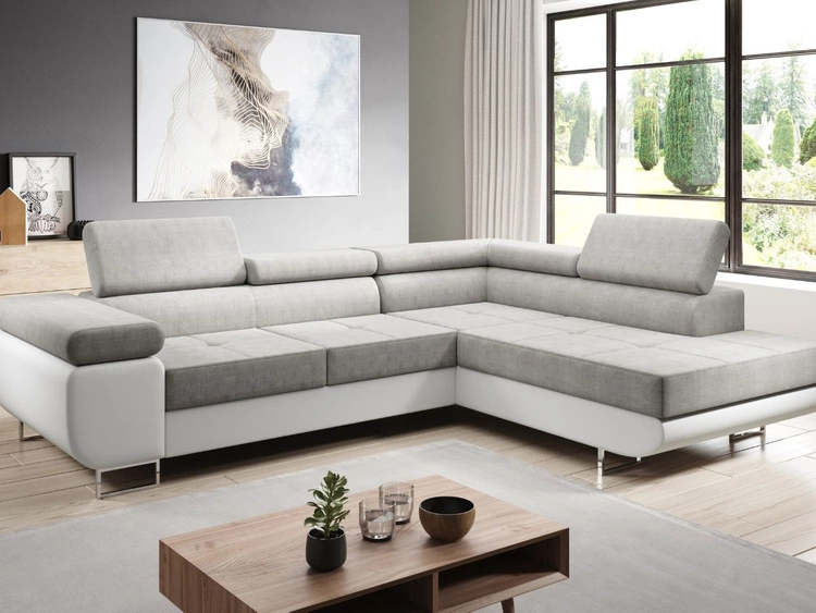 Anzahl der Produkte: 411Ecksofa L-Form Rechts mit Schlaffunktion und Bettkasten Solam L Hellgrau, Weiß