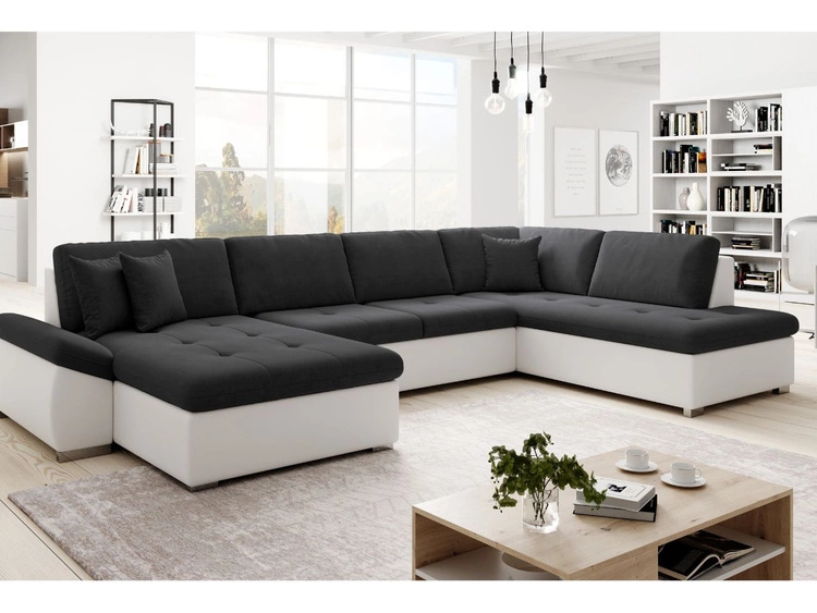 Wohnlandschaft mit Schlaffunktion Rechts Moni U Schwarz, Weiß