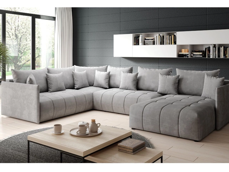 Anzahl der Produkte: 411Wohnlandschaft mit Schlaffunktion und Bettkasten Ardi Bis Hellgrau