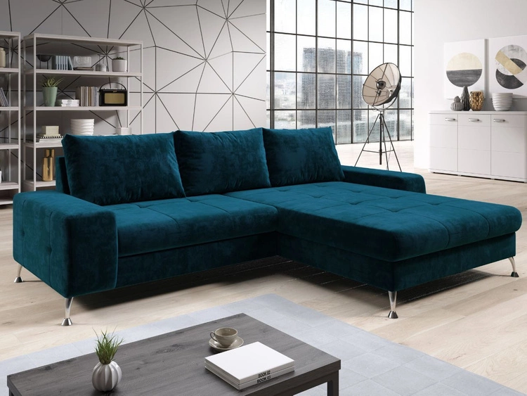 Ecksofa L-Form Rechts mit Schlaffunktion und Bettkasten Tonny Dunkelblau