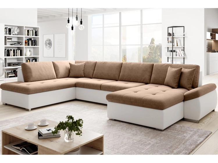 Wohnlandschaft mit Schlaffunktion Rechts Moni U Braun, Weiß