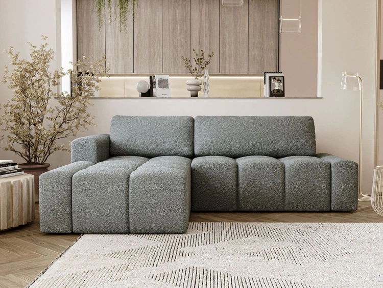 Ecksofa L-Form Links mit Schlaffunktion und Bettkasten Lana Grau