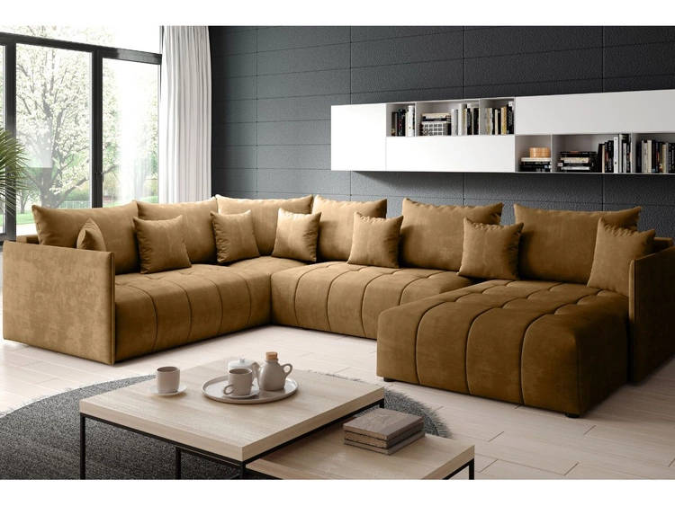Wohnlandschaft mit Schlaffunktion und Bettkasten Decor U Gelb