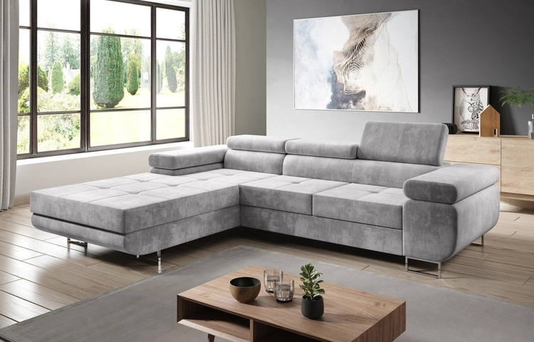 Ecksofa L-Form Rechts mit Schlaffunktion und Bettkasten Solam Hellgrau