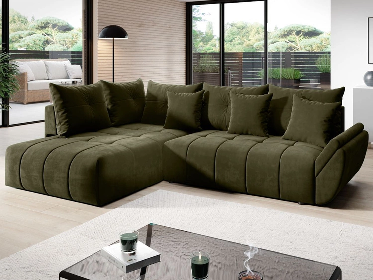Ecksofa L-Form Links mit Schlaffunktion und Bettkasten Solam L Grün