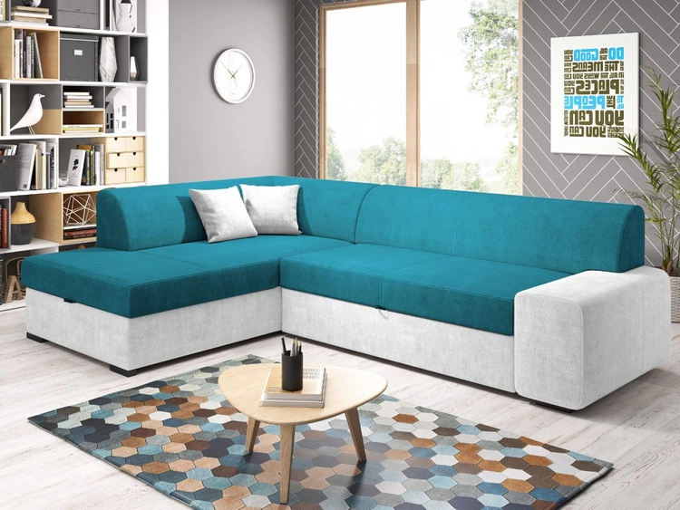 Ecksofa L-Form Links mit Schlaffunktion und Bettkasten Fresto Hellblau, Hellgrau