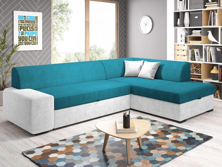 Ecksofa L-Form Rechts mit Schlaffunktion und Bettkasten Fresto Hellblau, Hellgrau