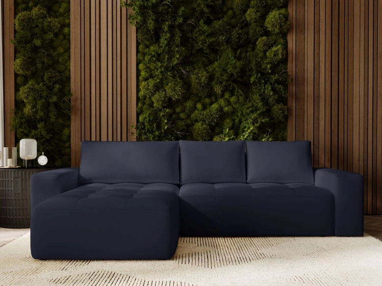Ecksofa mit Schlaffunktion und Bettkasten Links Milet Dunkelblau