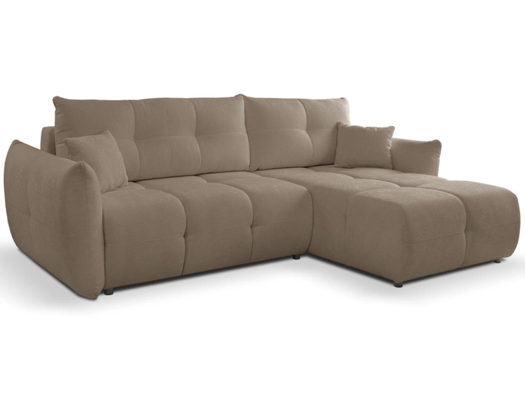 Ecksofa L-Form Rechts mit Schlaffunktion und Bettkasten Limon Dunkelbeige
