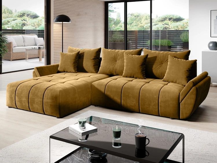 Ecksofa L-Form mit Schlaffunktion und Bettkasten Decor L Gelb