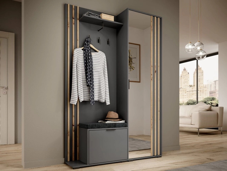 Garderobe mit Spiegel und Kleiderhaken Macron Graphit Artisan Eiche