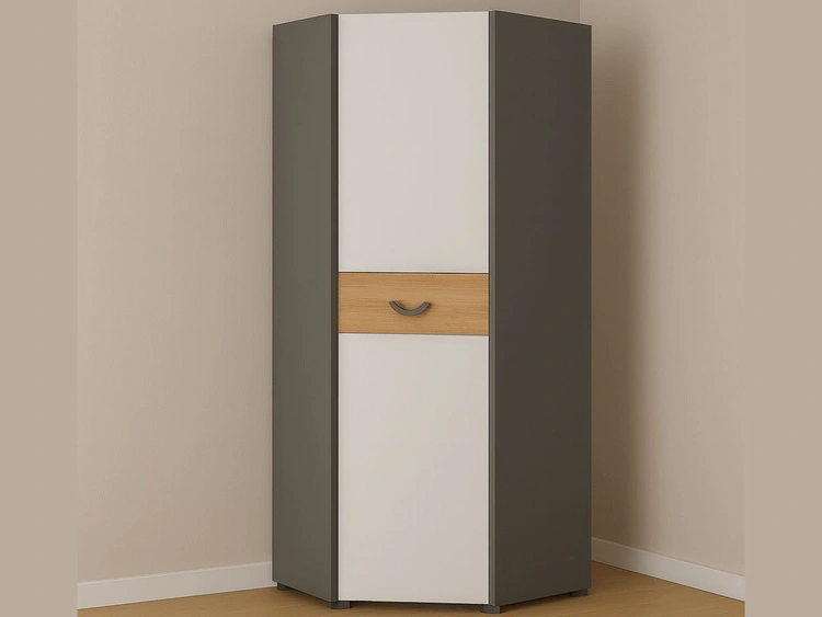 Eckkleiderschrank mit einer Tür für ein Jugendzimmer Casa Nash Eiche, Weiß, Grau