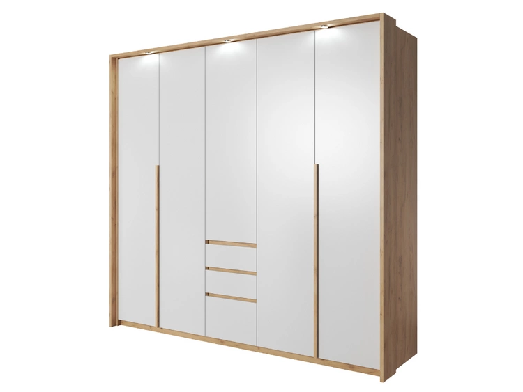 Anzahl der Produkte: 4Fünftüriger Kleiderschrank mit Drehtüren und LED-Beleuchtung Baffi Eiche Craft Gold, Weiß