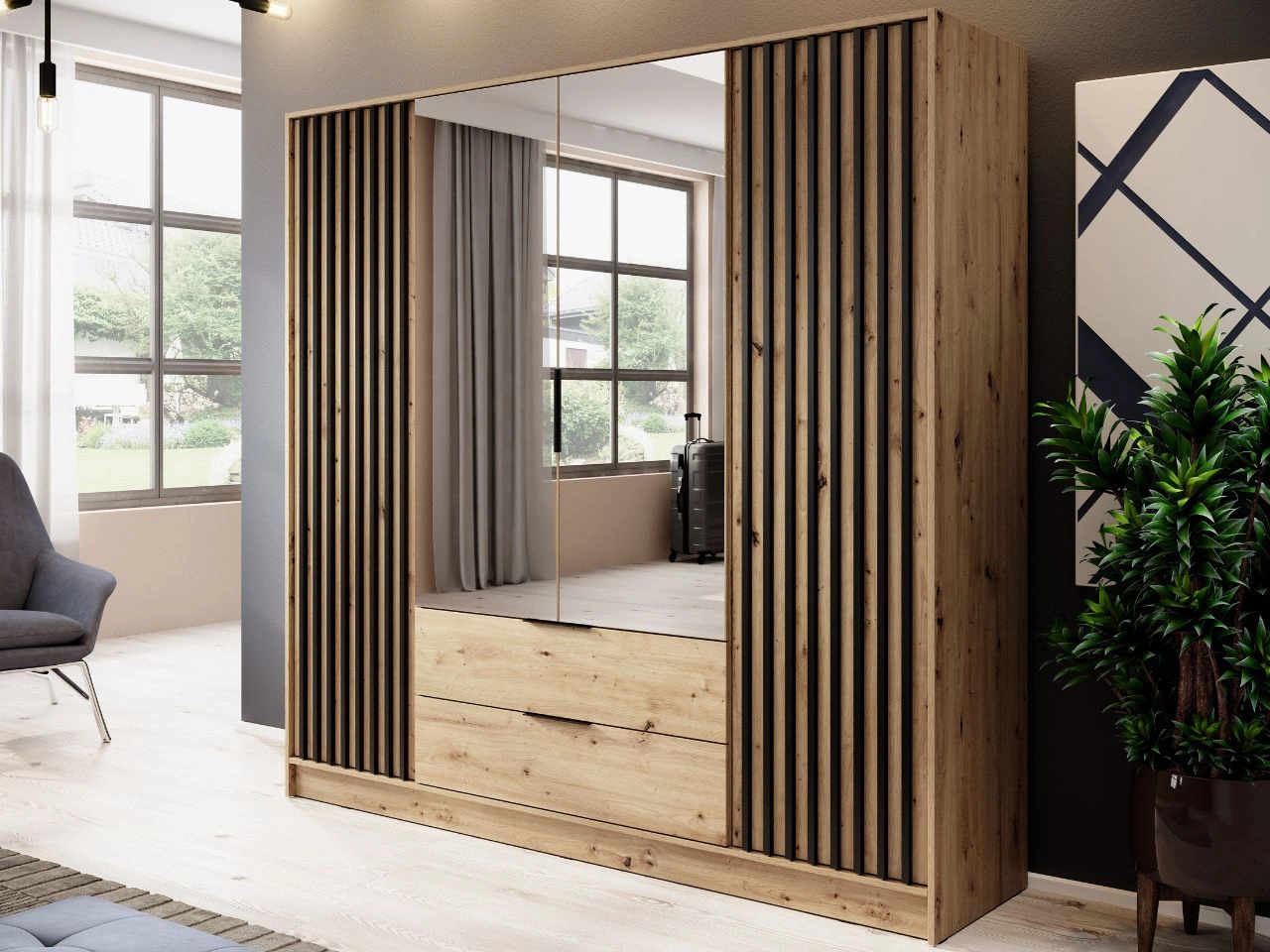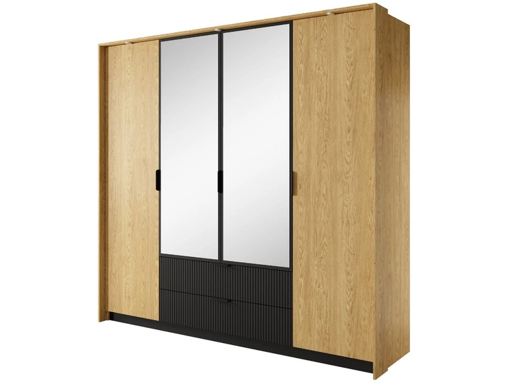 Kleiderschrank mit Drehtüren, Schubladen und Spiegel Bilancio Eiche Barista