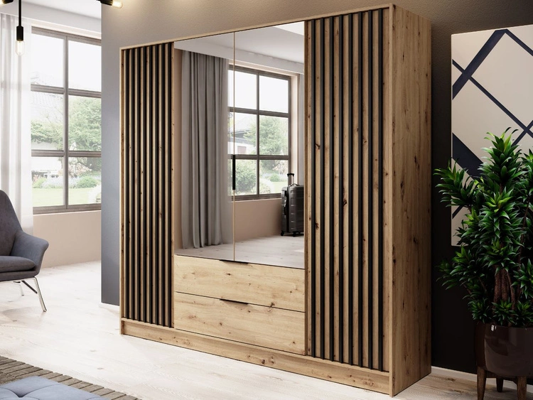 Ein Kleiderschrank mit Spiegel ist nicht nur funktional, sondern auch ästhetisch ansprechend. Die Spiegel reflektieren das Licht und lassen den Raum größer und heller erscheinen. Diese praktische Funktion ist perfekt für kleine Räume oder wenn du deinem Raum einen Hauch von Glamour verleihen möchtest. Entdecke Kleiderschränke mit Spiegel in verschiedenen Designs und Farben wie Artisan Eiche und Baltische Eiche, um deinem Schlafzimmer einen individuellen Stil zu verleihen.