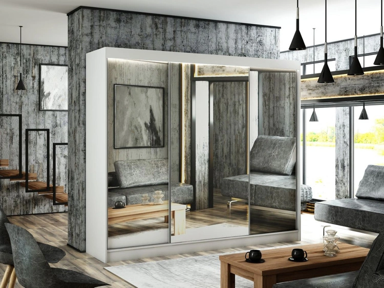 Schiebetürenschrank mit geriffelter Front und Spiegel 200 cm Fano Weiß