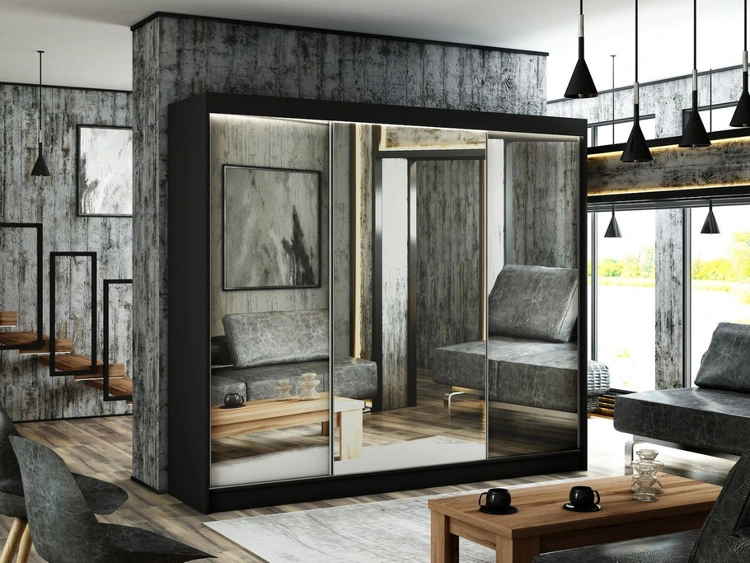 Schiebetürenschrank 250 cm mit Spiegel und LED-Beleuchtung Luzio Schwarz