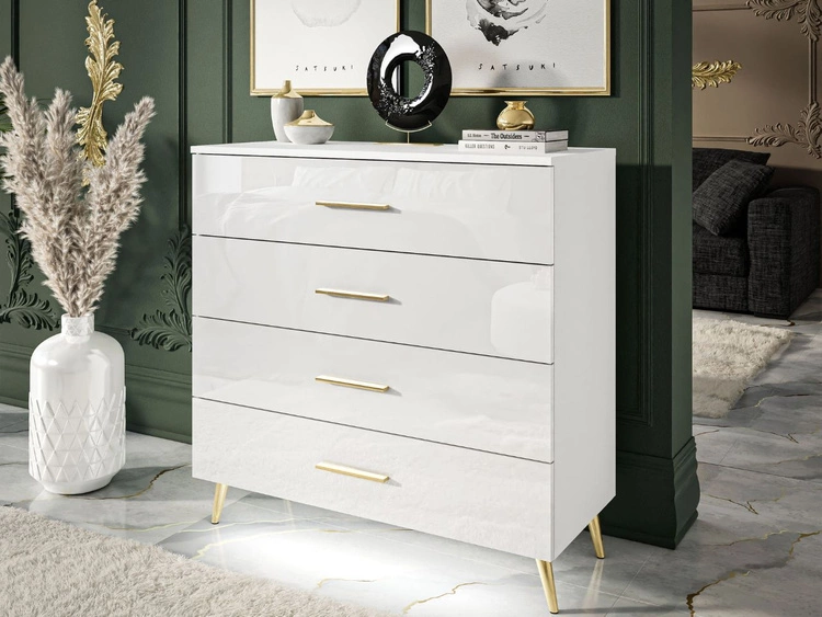 Anzahl der Produkte: 28Kommode mit vier Schubladen und LED-Beleuchtung auf Goldenen Beinen Nuveo Weiß Hochglanz