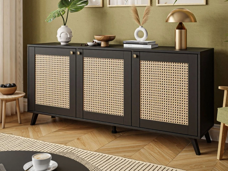 Drehtürkommode mit Flechtmuster im Boho-Stil Bellance schwarz