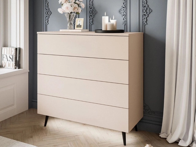 Kommode mit Schubladen und LED-Beleuchtung auf Schwarzen Metallbeinen Nuveo Kaschmir