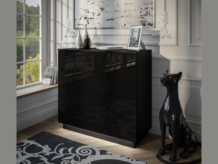 Kommode mit vier Schubladen und LED-Beleuchtung Nuveo Schwarz Hochglanz