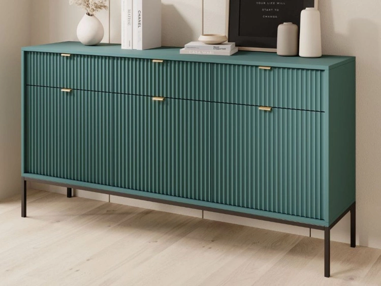 Kommode mit Türen und Schubladen Amber Grün, Schwarz Frame