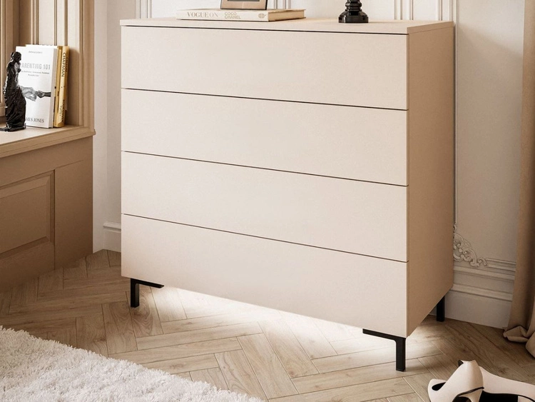Kommode mit Türen und Schubladen Viva Beige auf Schwarzen Beinen