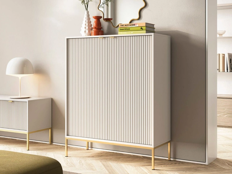 Kommode mit Türen und Schubladen Viva Beige auf Golden Beinen