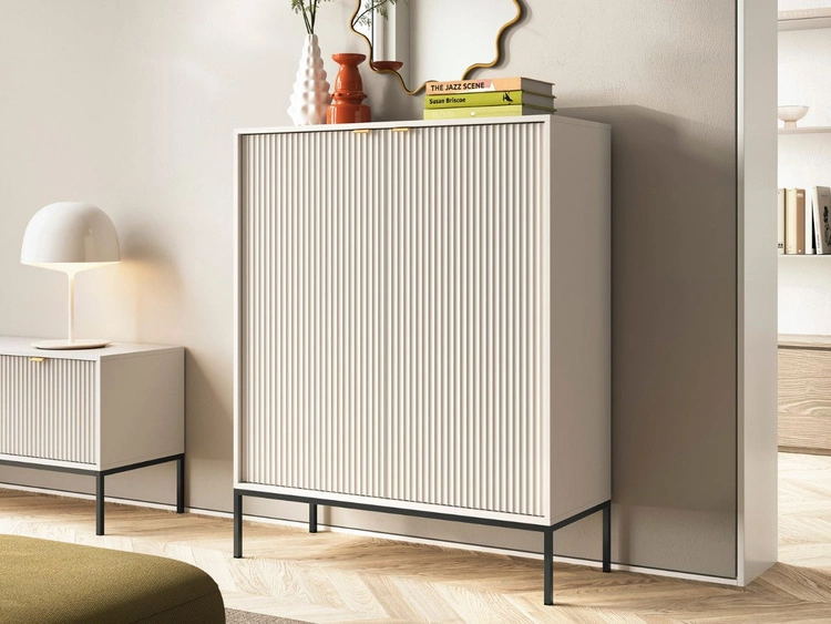 Kommode mit Türen Amber Kaschmir auf schwarzen Beinen