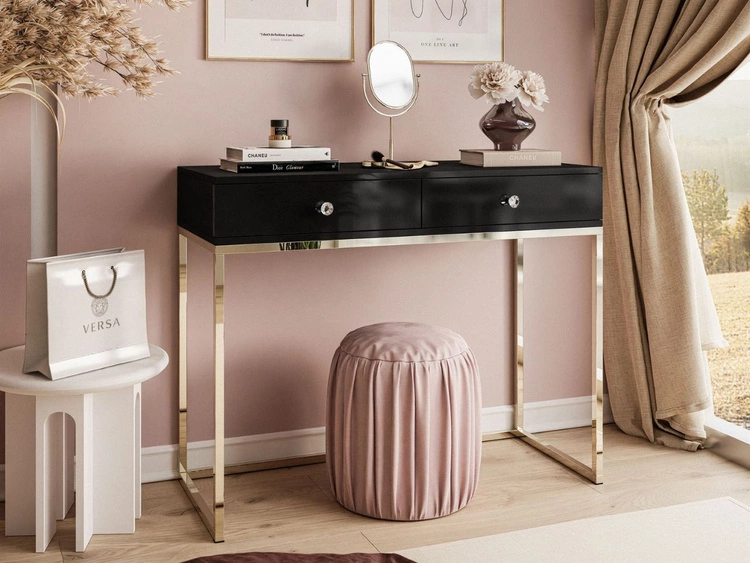 Konsolentisch mit Schubladen und goldenen Beinen Olivine Schwarz Hochglanz