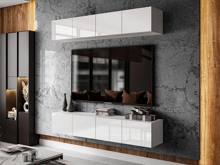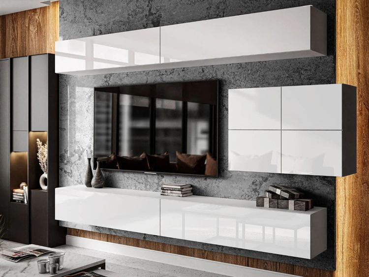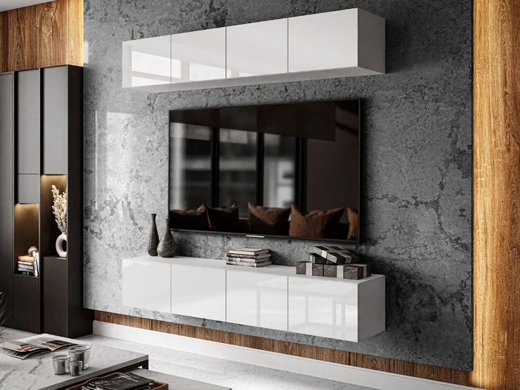 Anzahl der Produkte: 178Hängende Wohnwand für das Wohnzimmer mit LED-Beleuchtung Nodoo Weiß Hochglanz